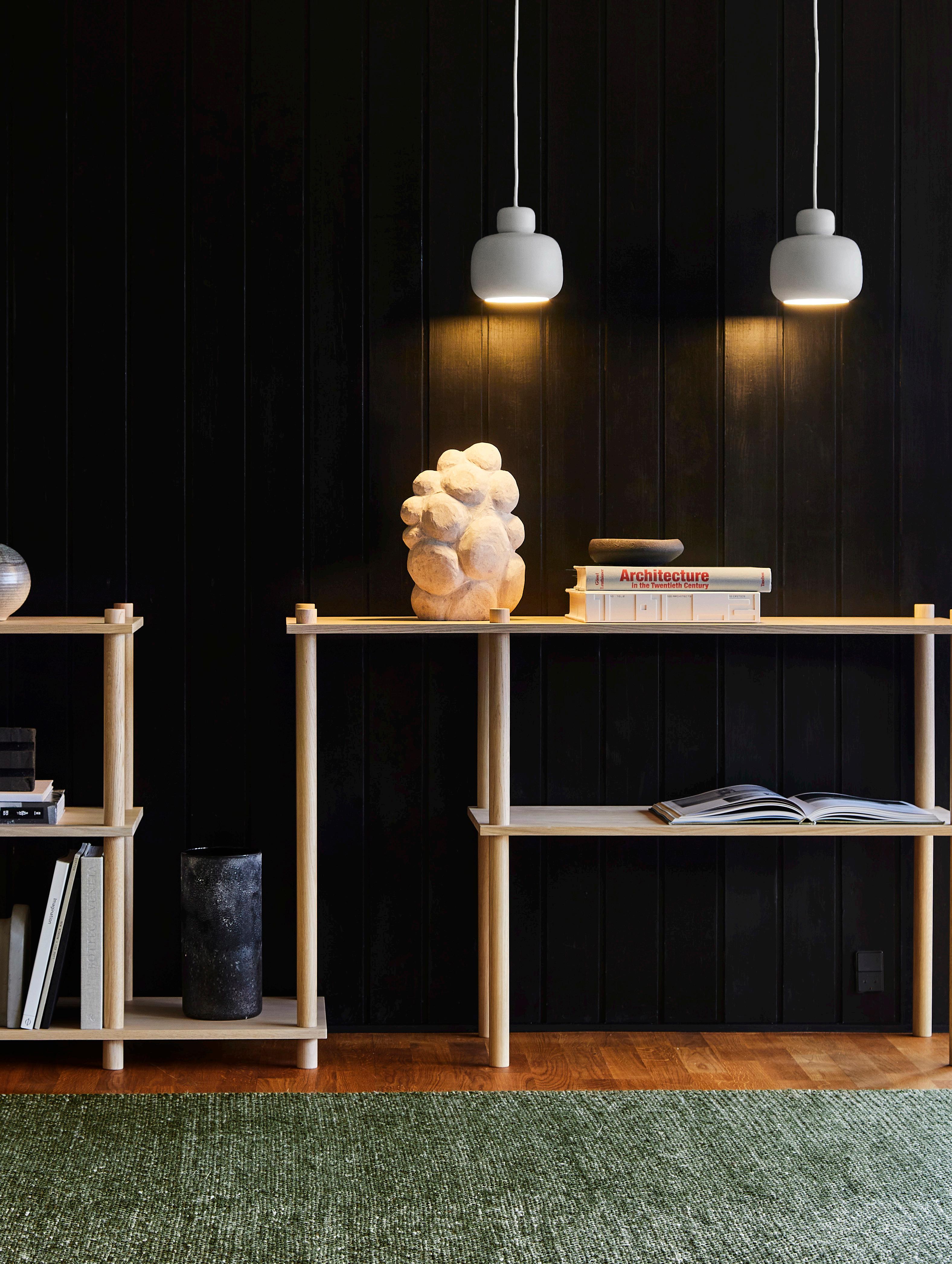 A new functional addition to the modular Elevate shelving system has been added to our collection. The Elevate system has been extended with a spacious cabinet, side and back panels. Giving you the opportunity to hide away the clutter, divide spaces and lean books against the sides.