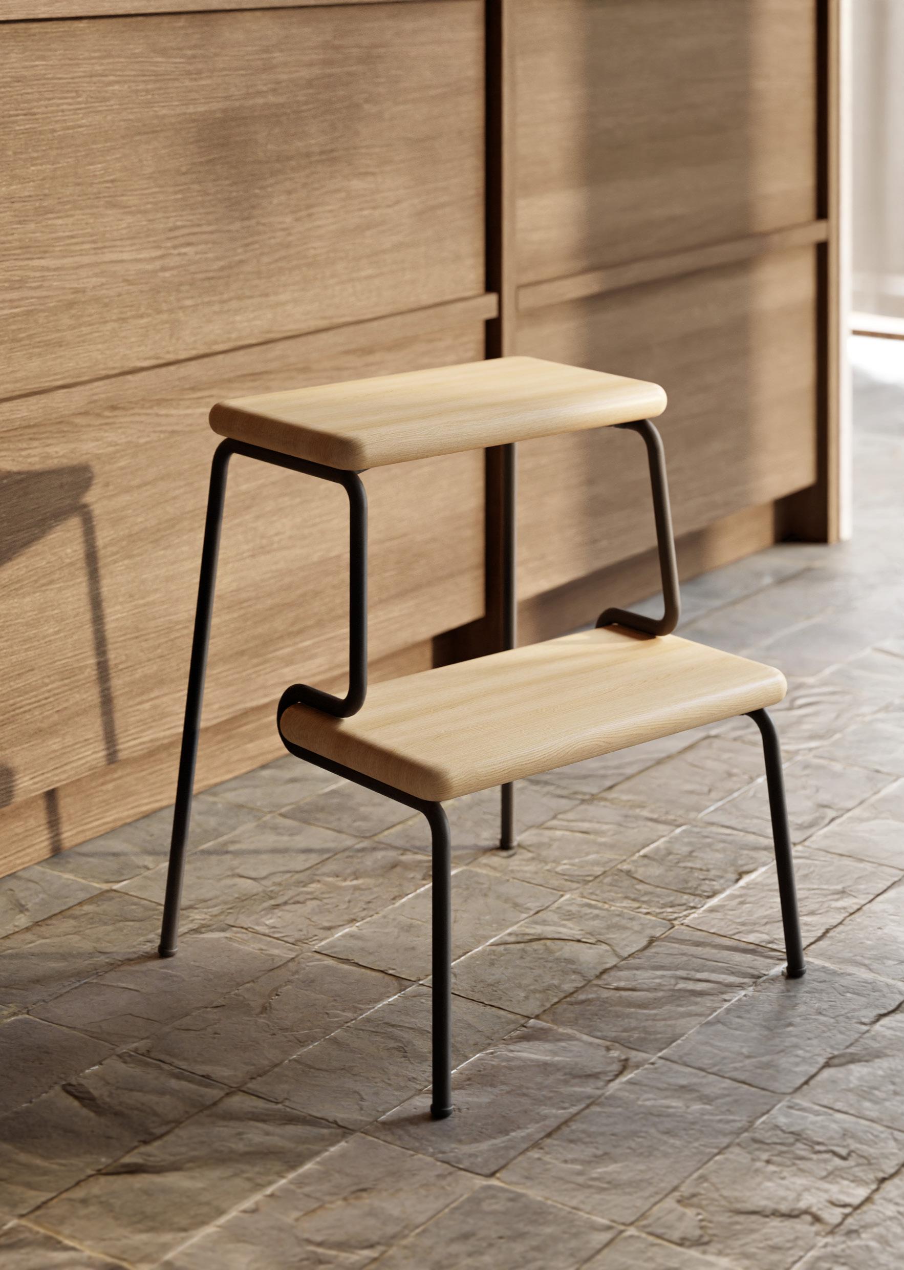 Slalom seamlessly blends form and function. With its portable nature, it effortlessly serves as an assistant for reaching the top shelves in the wardrobe, a companion for children in the kitchen or a convenient side table by the bed.