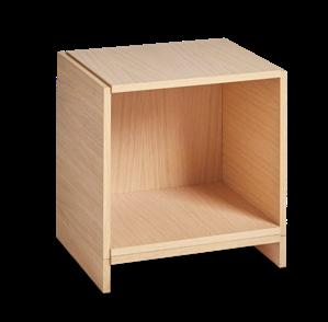 Every modular brick is made out of five oak boards. The different levels of the boards make it possible to stack the Bricks on top of each other, creating a self-locking construction that encourages the creation of a personal arrangement. Build it brick by brick and create a changeable storage setting, a room divider, a wall-mounted bookcase, a side table or a display for objects. Adding a floor base to Bricks creates an elegant, airy expression that will complete the visual aesthetics of the storage setting.