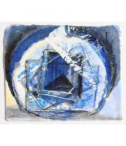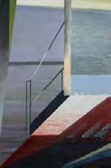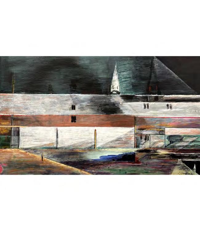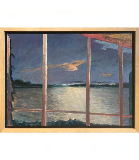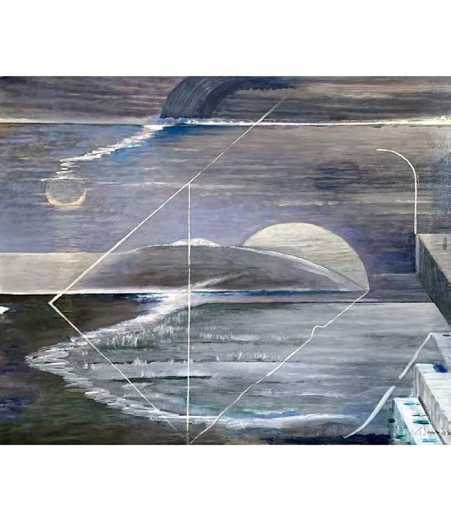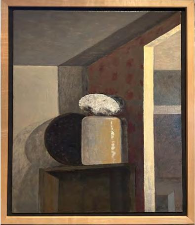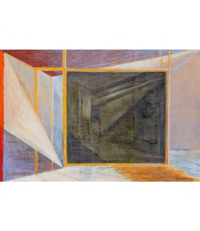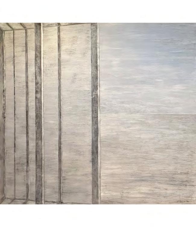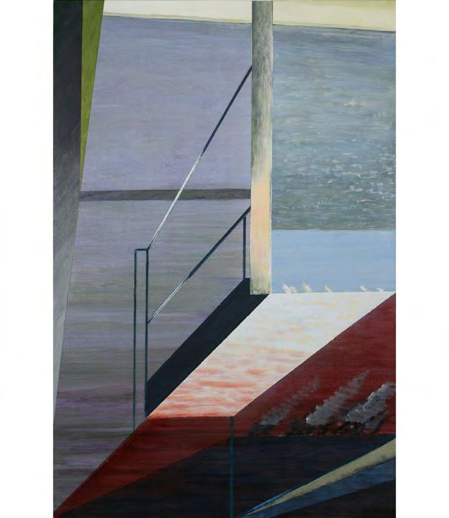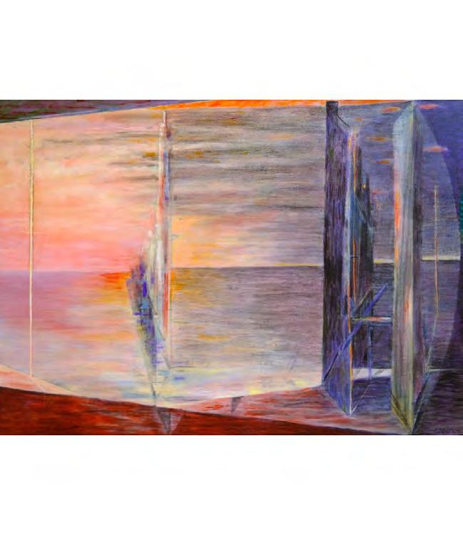 As with the tide, there’s a rhythm to Stout’s compositions—architectural forms break apart, then coalesce again. Doorways, ships, and interior spaces emerge and dissolve like relics from an ancient coast. And though some works feel rooted in personal memory—echoes of childhood homes, glimpses from windows—they are never confined by the personal. They suggest something larger: the mythic quality of home, the timelessness of sea and sky, the vulnerability of living at the edge.
