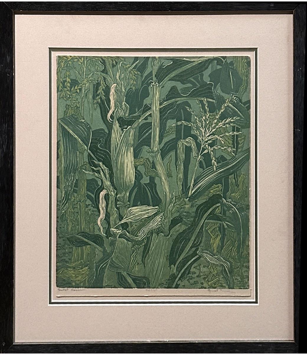 Second State: etching, drypoint and aquatint on copper, printed in earth green, thalo blue and yellow green on Basingwerk Parchment ; 2 plates 10 x 11.75 in Framed 14 x 16 in $850.00