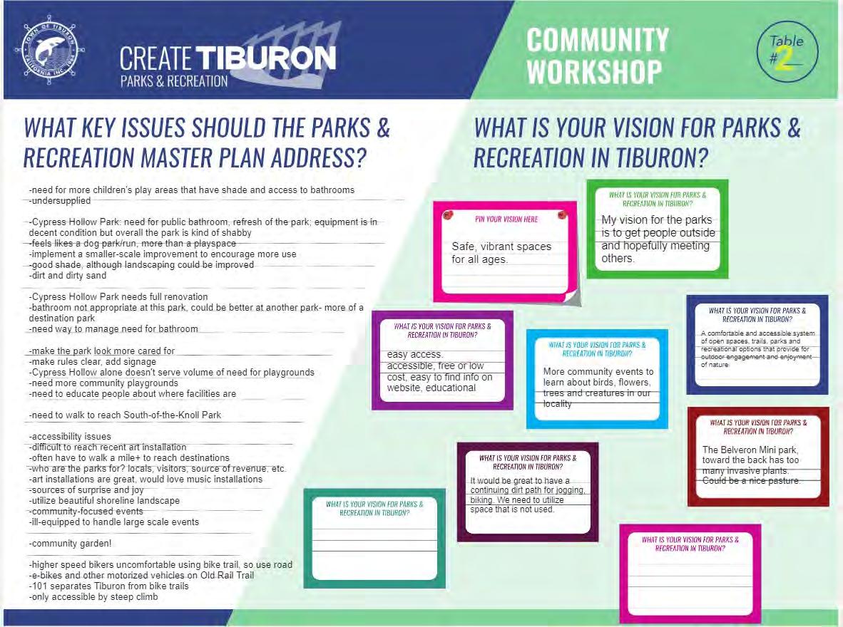 The recreation and programming priorities are the “What” of the decision-making framework: what specific changes does the Tiburon community want to implement?