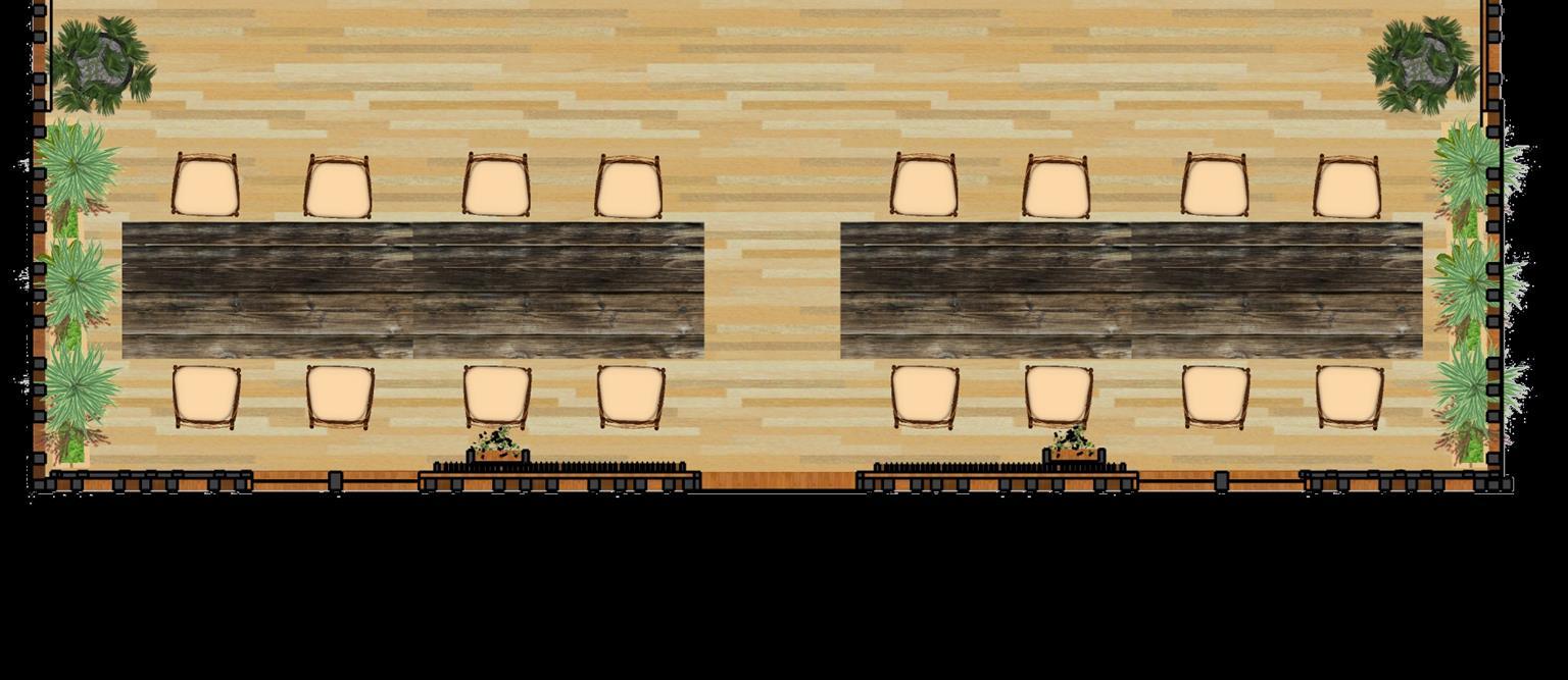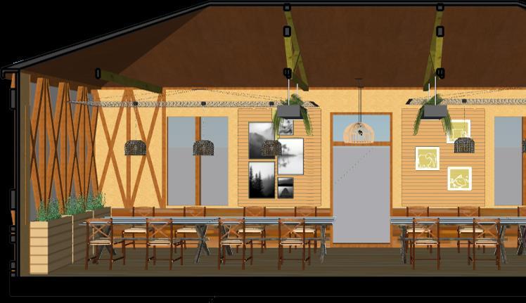 Nuestra conceptualización del espacio se resume en "Estar dentro es estar fuera", esto se logra con la implementación de áreas verdes integradas a los mobiliarios, el uso de maceteros, jardineras y enredaderas colocados alternadamente entre piso y techo Además de luminarias led para el bajo consumo energético