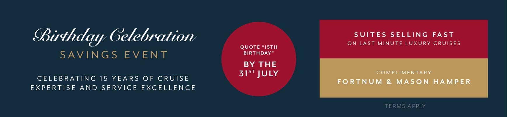 Terms and conditions: Prices and terms correct at time of production (17.07.2024). Save up to 40% will be based on Oceania and the sailing is Regatta - 3rd April 2025.. Free on-board spend per couple available with Oceania, Azamara and Silversea campaigns. Low deposits up to 10% based on Explora campaign.New bookings only made 01.07.24 – 31.07.24. Complimentary Fortnum and Mason Hamper is not combinable with any other promotions or discounts and are for new bookings only made from 01.07.24 to 31.07.2024. A minimum spend of £12,000 per booking applies to receive the Fortnum and Mason Hamper. In the event of cancellation, the customer will be charged the cost of the deposit and the cost of the Fortnum and Mason Hamper. If unavailable a gift voucher of equivalent value will be supplied as an alternative. Some sailings may be excluded from the guarantee. Not combinable with any other offer, discount or promotion and may be changed or withdrawn at any time without prior notice.A minimum spend of £10,000 per couple applies to receive an extra £100 off top suites, not combinable with packaged bookings and valid on new bookings only between 25.06.24 – 31.07.24. Top suites are Celebrity - Sky Suites and above, Regent and Seabourn - Penthouse Suites and above, Silversea - Silver Suites and above, Explora - Ocean Penthouse Suites or above, Cunard - Princess Grills Suite or above, Azamara - Club Continent Suites or above. These are not applicable to rebooks. Savings are already included in advertised prices. These are not applicable to rebooks. Savings are already included in advertised prices. In the case of packaged holiday quotes, individual holiday components may be subject to price fluctuations. As such, the competitor quote may be subject to independent verification to assess its recent validity. Some sailings may be excluded from the guarantee. SixStarCruises acts as an agent for ATOL-protected cruise operators only. Other cruise operator terms and conditions may apply. Offer may be changed or withdrawn at any time without prior notice. Errors & omissions excepted. *INCLUDED CHAUFFEUR Private executive chauffeur credit of up to US$500 per suite. Solo occupancy will receive $250 SixStarCruises.co.uk is a trading name of WTH (UK) Ltd (ABTA L3743). SixStarCruises.co.uk, 110A & 112-114 Market St, Chorley, PR7 2SL.