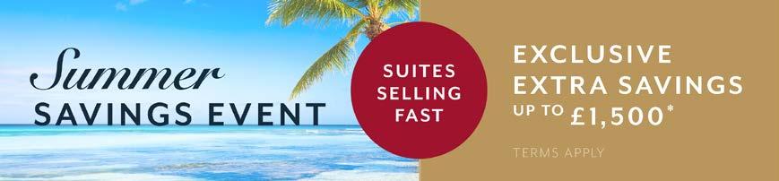 TWO-CATEGORY VERANDA SUITE UPGRADES PLUS UP TO $2,000 ONBOARD SPEND ON SELECTED SAILINGS FREE TWO-CATEGORY SUITE UPGRADE WORTH UP TO £5,052 PER COUPLE
