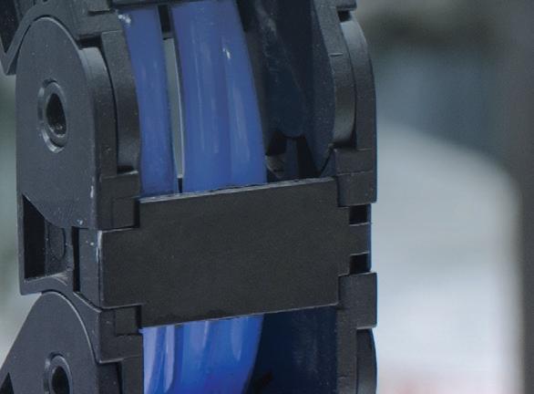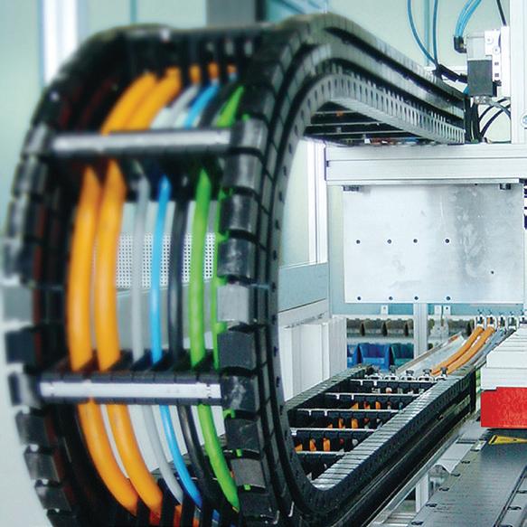 The combination of a triflex R flexible cable carrier with high tensile force absorption and the i.Sense TR.B sensor, makes it possible to guide and protect robot cables, thus significantly increasing service life. Condition-based maintenance using the TR.B sensor makes maintenance more sustainable, as users can avoid unnecessary or premature product replacement. And if there is a chain break, the sensor can be reused after an emergency shutdown of the system.
