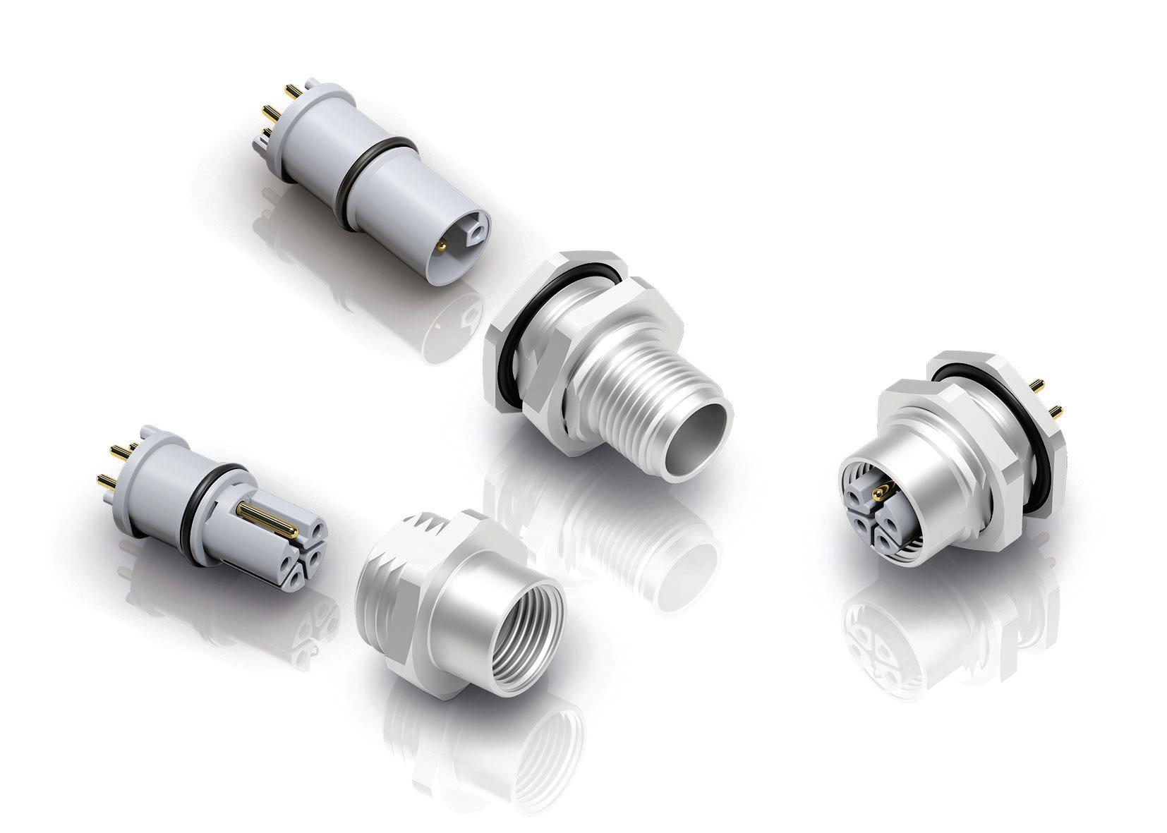The M12 portfolio now includes panel mount connectors with L-coding and dip solder contacts. As part of the 823 series, this compact connector is used for hand soldering, wave soldering, and reflow soldering on printed circuit boards (PCBs). The M12-L is a space-saving alternative to the 7/8-in. connectors typically used in power supply, making it suitable for Industrial Ethernet applications in the PROFINET environment. When mated, the connector o ers IP68-level protection and is suitable for both front and rear panel mounting.