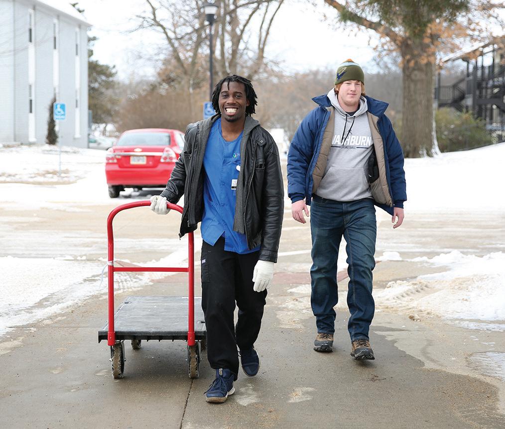 Guests could tour the various campus buildings, including Mabee Library, before getting a free fan bag with hats and pom poms. Without the stress of unloading the car or saying that first goodbye, families could relax and have some fun with their college students.