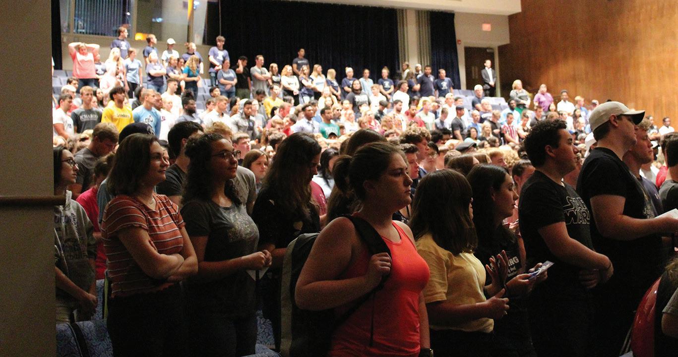 Every new school year, during the first week of classes, students who are new to campus, along with faculty and staff, gather in White Concert Hall to celebrate the new school year and what it has in store.