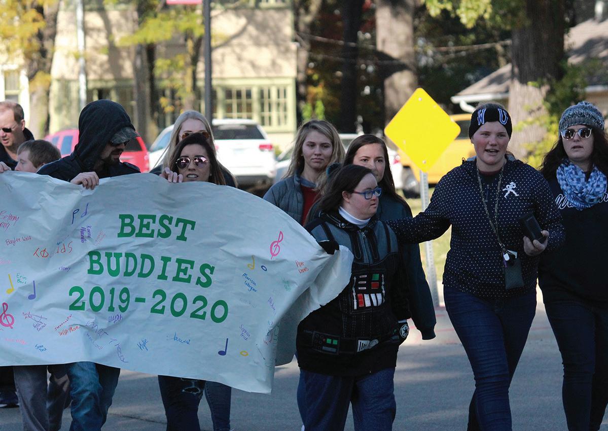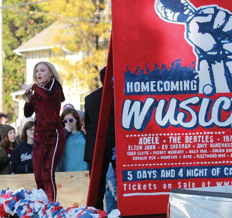 Top Right: Students perform as Ryan and Sharpay Evans from High School Musical during the annual Yell Like Hell homecoming celebration.