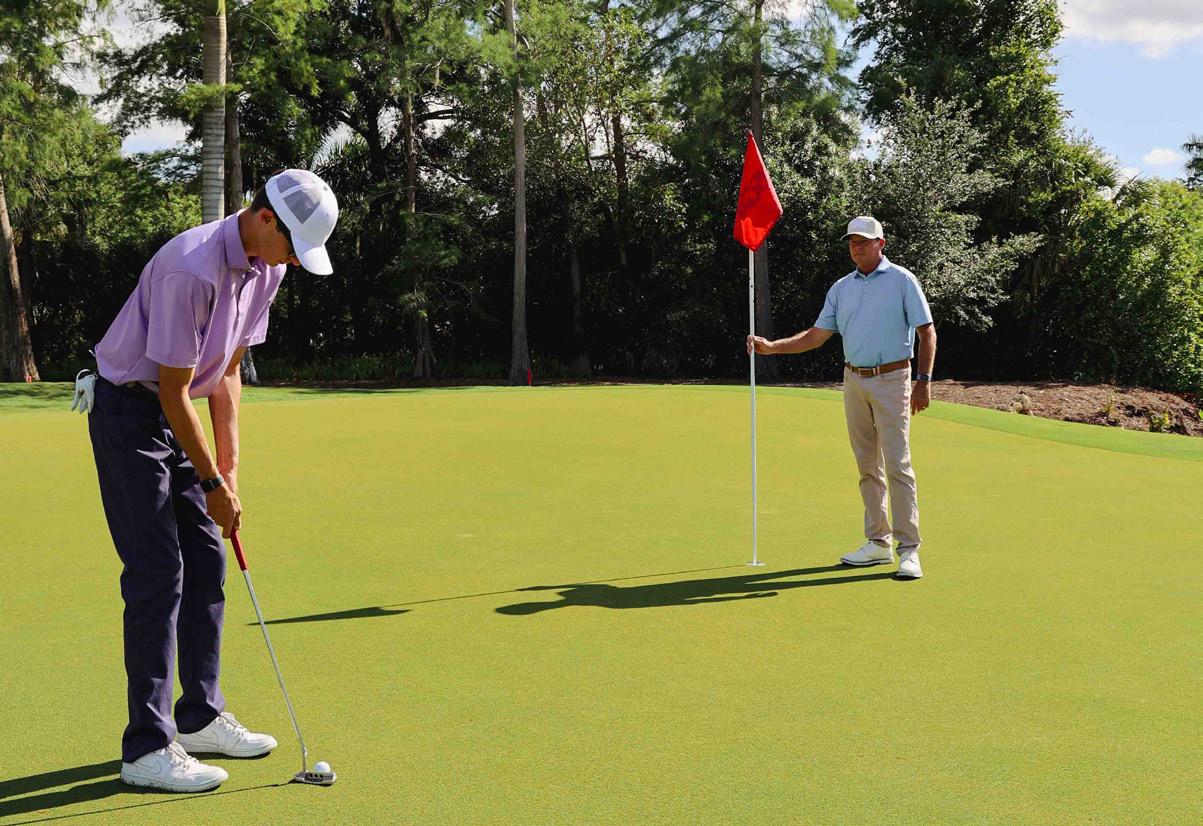 Renovated in 2023, this Andrew Green designed course features rolling berms, pine and cedar hammocks, and elevation changes that blend beautifully and naturally with the surrounding preserve and lakes. The diversity of flora and fauna, lined with elegant tall pines, give this course a unique northern feel.