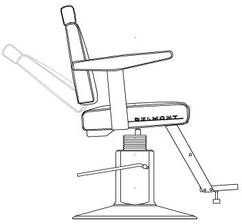 The Dainty Barber Chair, is a tough, reliable, and comfortable industry staple with a durable hydraulic base, reclining backrest, and adjustable headrest, featuring its original Belmont marque and sharp modernist design.