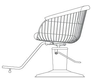 The Harp chair, featuring 360º lockable rotation, padded armrests, a footrest with stopper, and chrome metalwork, is expertly designed for styling salons. Showcasing a crescentshaped backrest, delicate steelwork, and soft, upholstered support.