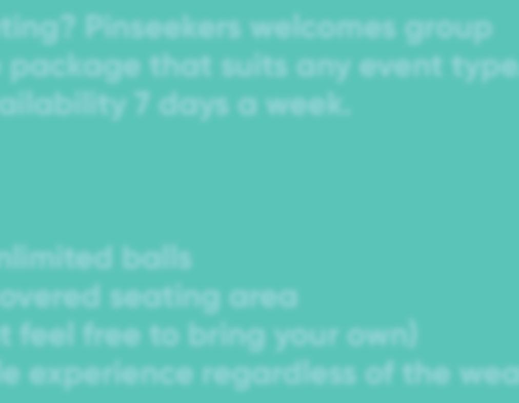 Looking for a private corporate outing? Pinseekers welcomes group bookings, providing a tailor-made package that suits any event type. Our packages are flexible, with availability 7 days a week.