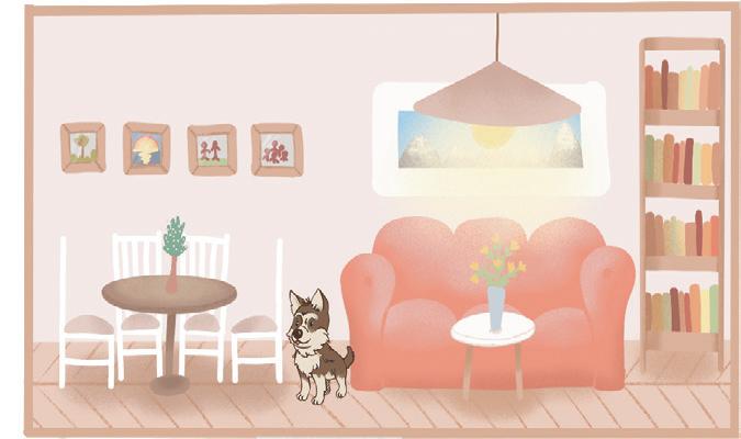 3. Im Wohnzimmer gibt es zwei Stühle und einen Tisch.