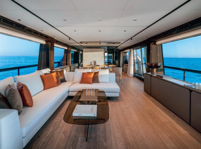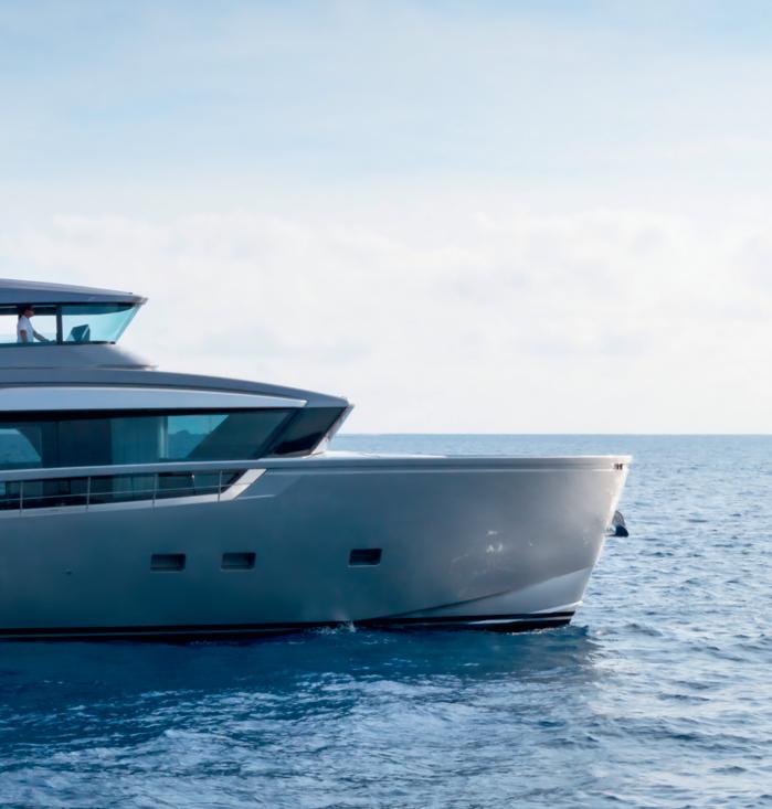 With deliveryscheduled for September 2026, this yacht represents the natural evolution ofFIM’s growth, combining elegance, sportiness, and innovation into avision ofcontemporaryluxury, Italian craftsmanship, and cutting-edge technology. The flybridge blends seamlessly into the overallprofile,creatingconvivialspacesthatarebothrefined and functional. Fabbrica Italiana Motoscafi has orchestrated a team effort involvingtop-levelpartners:DesignaLOTfortheexteriorlinesandStudio Nerocardinale forthe interiors.The result is a perfect balance between aesthetics and functionality, interpretingthe brand’s distinctivevalues through a contemporary lens. Enhancing its pioneering character is theadoptionofapatentedemergencyflotationsystem,theworld’sfirst solutionabletoguaranteemaximumsafetyforbothvesselandcrewin case ofcollision or failure.