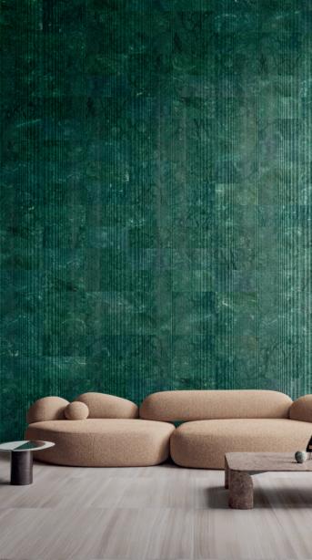 Mramor na zidovima stvara snažan vizualni dojam, osobito u kupaonicama. Salvatori je nedavno predstavio teksturu Nagi by Yabu Pushelberg – sa završnom obradom od prirodnog kamena s nježnim valovitim linijama. Pločice pravokutnog oblika mogu se slagati vodoravno ili okomito, a njihov precizno osmišljen dizajn omogućuje raznolike kompozicije. Rezultat je dinamičan, trodimenzionalan uzorak koji se mijenja ovisno o kutu svjetla, i u prostoru stvara dojam pokreta, ritma i suptilne elegancije.