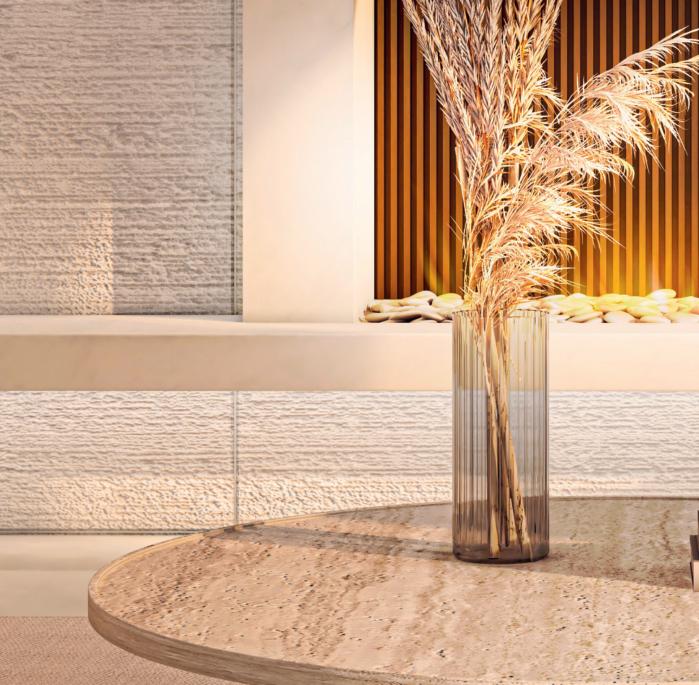 Marbled walls are sophisticated and leave a strong visual impression, especially in bathrooms. Salvatori recently introduced their Nagi by Yabu Pushelberg texture – a natural stone finish with gentle flowing lines. The rectangular tiles can be stacked horizontally or vertically, as their design allows for a variety of compositions. The result is a dynamic, three-dimensional pattern that changes depending on the angle of the light, creating a sense of movement and rhythm, adding subtleelegancetoeveryspace.