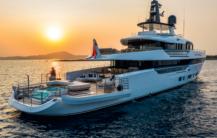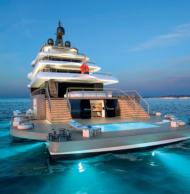 Columbus Yachts presents the new Atlantique 47 metres M/Y Acqua Chiara. Her distinctive exterior profile features taut yet fluid lineswidening amidship and tapering towards the stern and bow. Undoubtedly an innovative design that focuses on liveability on board and ongoing contact with the sea. Built with steel hull and aluminium superstructure, M/Y Acqua Chiara main characteristics include a 9.10 m width, a 2.4 m draft and an intentional 499GT volume. Outdoor, the sternspacesaredistributedonthreecloselevels:from bow to stern, we find a first covered dining area, a living areawith a scenic pool and fold-out balconies, and finally a platform with transformer, just 50 cm above the sea surface. The interiors are classic with modern touches such as the use of Vetrite, Sicis mosaic and dark metal effect finishes.