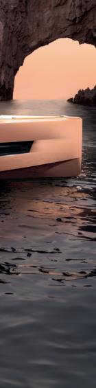 The Magellano 27M opens the third chapter of an evolutionary story. From her explorer soul emerges a novelwayofembracingthe sea,where the spirit of discovery flows into the elegance of life. Exterior designer JarkkoJämsénbuilttheconceptaround a radical idea: theMagellano 27M is a living in-situ artwork, conceived not to dominate nature but to exist through it, her beauty revealed only in dialogue with the elements. By stripping away the unnecessary and revealing the bare shape, the Magellano 27M transforms into a mirror where sea, sky, and light endlessly compose her surfaces. The interiors are designed by AMDL CIRCLE & Michele De Lucchi: at the heart of the project lies the main deck, conceived as a vast loggia over the sea, a space deeply glazed, immersed in light, and articulated bywooden architectural elements that evoke Mediterranean pergolas and patios. The result is an environment suspended between inside and out, a place where the landscape becomes part of daily life, and where design does not divide but filters, accompanies, and protects in continuitywith nature.