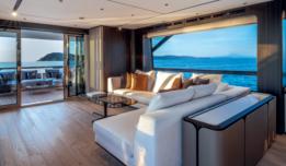 The 134 Superyacht presents a striking new profile, defined by elongated superstructure lines, bold hull glazing, and an extended hardtop that exudes both power and elegance on the water. Exterior living has been reimagined through vast, customisable spaces spanning the sweeping aft cockpit, upper deck, and flybridge, with the option to incorporate indulgent features such as aspatuborsecondaryhelm.Steppinginside,theflagshipinterior conceptshowcaseslight-filled,contemporaryspaceswithlimitless opportunities for personalisation, ensuring every yacht becomes a true one-of-a-kind creation.The latest and boldly different additiontothehighlycelebratedOceanRangeistheall-newSunseeker 74 Ocean. For owners seeking a seamless bond with the ocean, Sunseeker has crafted an inspired beach clubwith fold-down balconies,wherethelinebetweendeckandseafadesaway.Designed for effortless living, the layout allows family and friends to enjoy extended journeys inultimate comfort.