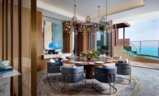 AtlantisTheRoyalwasconceptualisedasthe‘deconstruction’ of the traditional sculptural towers associated with Dubai, takingtheformofastackofindividualblocks,eachoffering a bespoke private experience. This bold architectural vision is reflected in every aspect of the resort, which ignites the horizon with a collection of 760 elegant Rooms, Suites, and SignaturePenthouses.FeaturingstunningviewsoftheDubai skyline and the Arabian Sea, the Suites and Signature Penthouses have private infinity pools. From sky-high swimming experiencesandfire-breathingfountainstotheworld’shighestconcentrationofcelebritychefrestaurants,AtlantisThe Royaloffersacuratedarrayofawe-inspiringmoments.