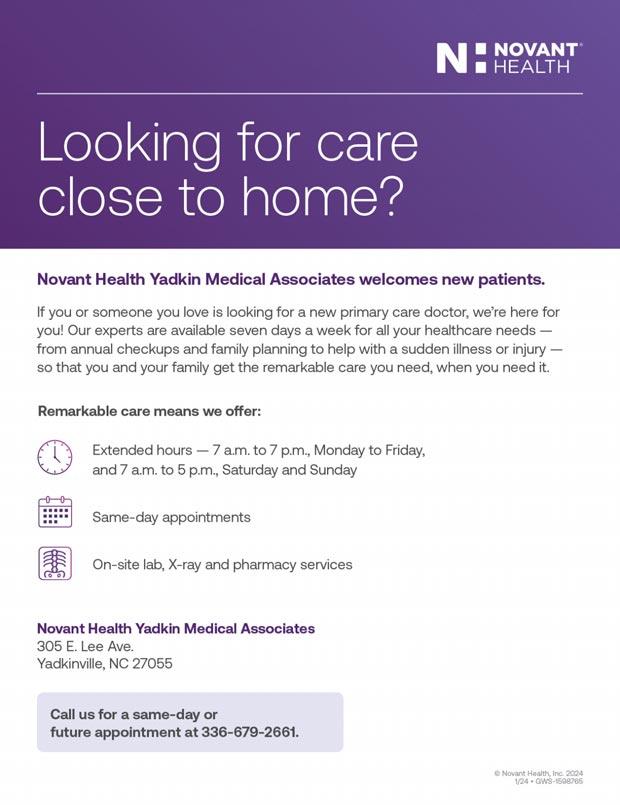 Health and educational articles included in Yadkin Valley Magazine are for information purposes only. Be sure to consult your personal physician before you begin any diet, medicine or course of treatment.