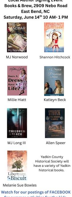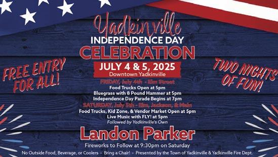Please submit information regarding fundraisers, gallery show openings, plays, readings, concerts or other performances at least two months in advance of an issue’s cover date. Sign up for our free weekly newsletter yadkinvalleyweekends.com/weekends