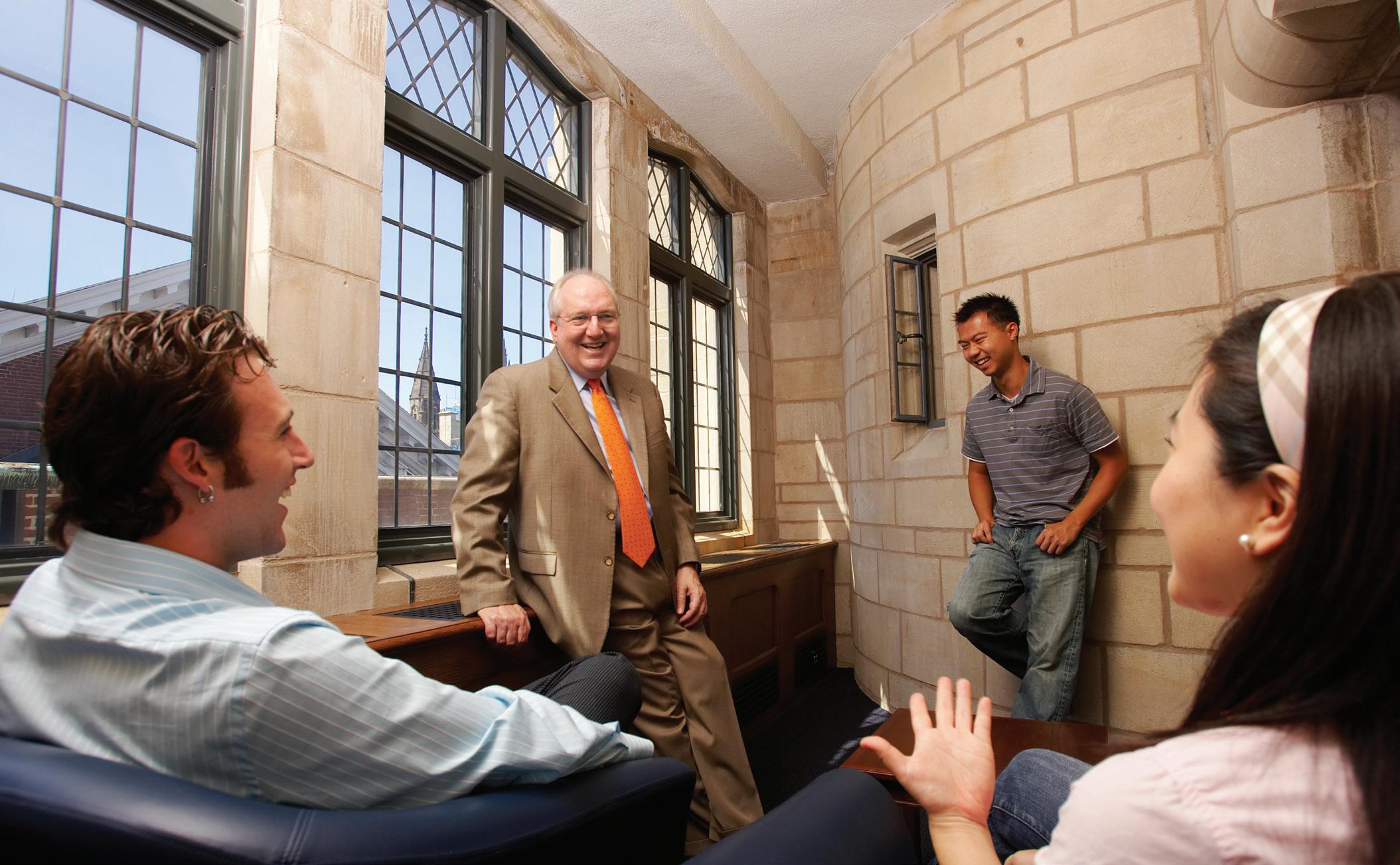 [Facing page, bottom] Students share a meal and conversation in the Adams Center lounge in celebration of the Chinese Lunar New Year.