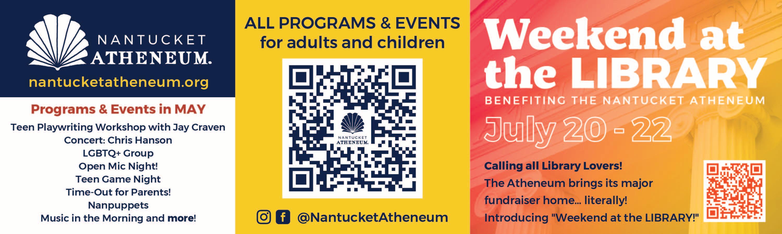Come in and get creative with your friends at the atheneum! Please enter through the Weezie Library doors. For ages 10+. No registration required but space is limited. Nantucket Atheneum, 1 India Street. 508-228-1110 NantucketAtheneum.org