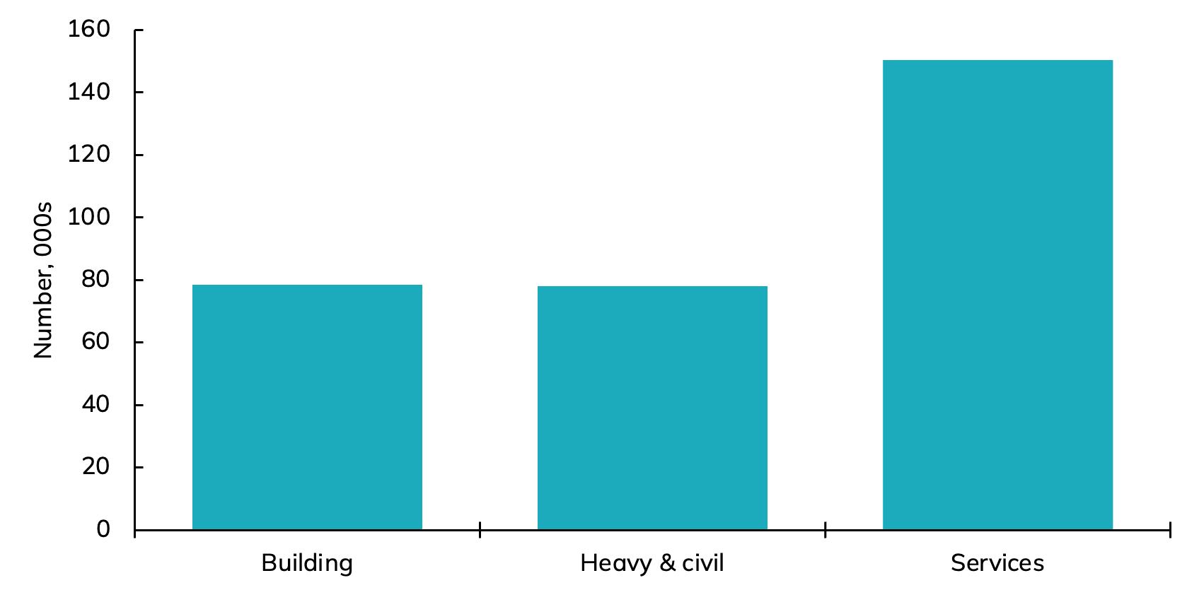 图29:过去一年,建筑业雇佣了近8万名员工,但来自该行业内部的人员只有不到一万名,这意味着新人培训及融入工作场所和工作文化是突出 问题