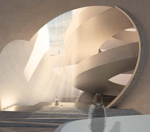 These renderings of the exhibition halls show the arrangement of the exhibits inside, as well as how the crevices bring light into the space, and the effects created by this light.