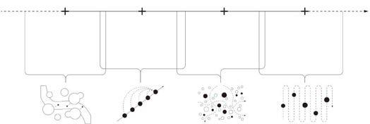 The axonometric map shows the exhibition spaces representing the four different symptoms of Alzheimer's disease and also expresses the visitor's tour route and the connection between the four spaces.