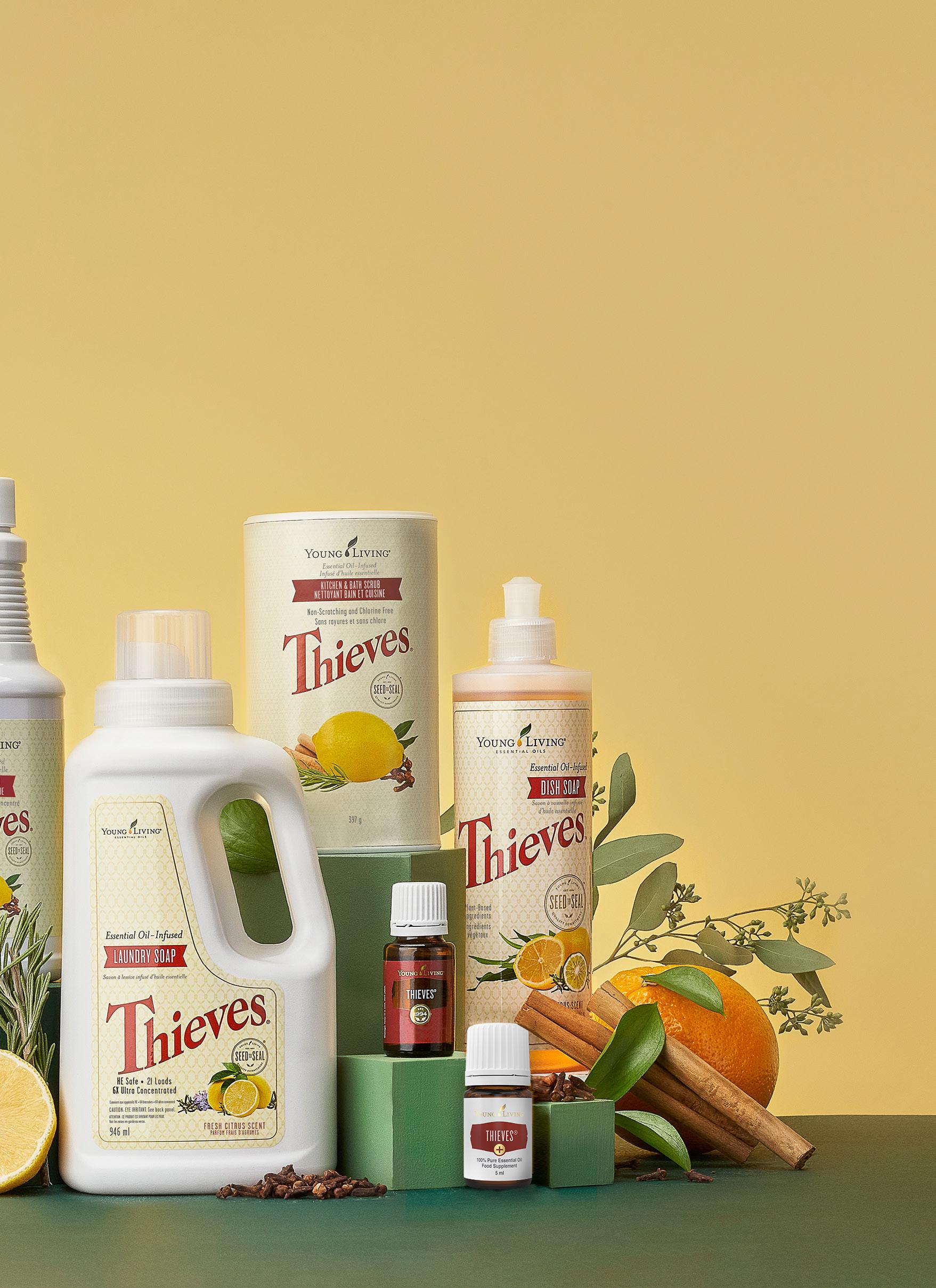 Darum haben wir unsere hauseigene Thieves® Linie entwickelt, die sanfte, aber effektive Alternativen zum Reinigen Deines Zuhauses bietet. Diese aus natürlich vorkommenden Inhaltsstoffen auf Pflanzenbasis hergestellten Produkte wurden mit Familien im Sinn entwickelt und Du kannst ganz beruhigt tiefenreinigen ohne aggressive Chemikalien in Dein Zuhause zu holen.