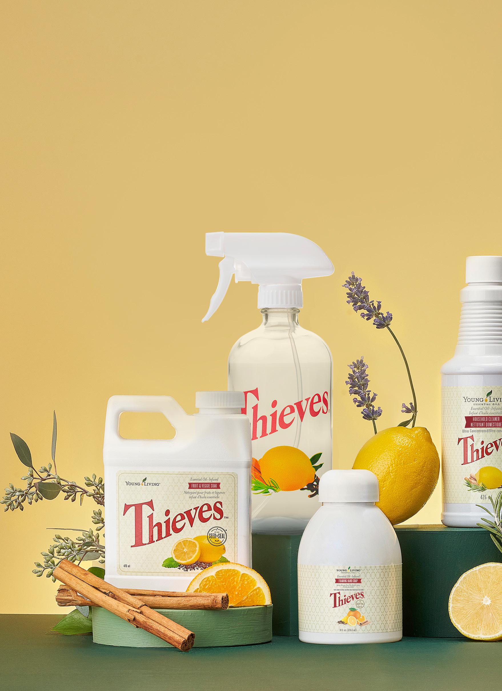 C’est pourquoi nous avons créé la gamme Thieves® qui comprend des produits doux et efficaces pour toute la maison et pour les besoins d’hygiène personnelle. Aux ingrédients d’origine exclusivement végétale et naturelle, vous pouvez avoir confiance en ces produits conçus pour les familles, sachant que vous faites un nettoyage en profondeur et que vous n’introduisez pas de substances chimiques agressives chez vous.