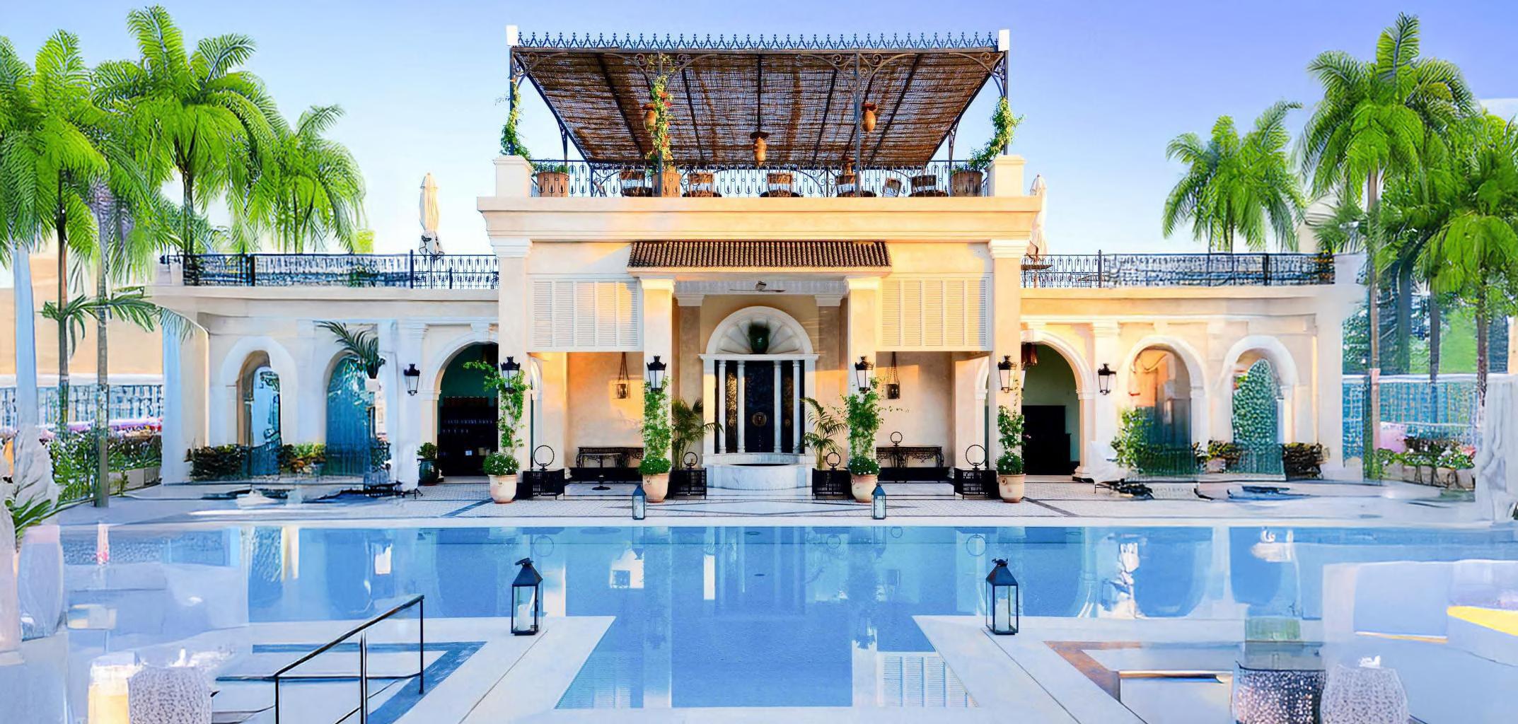 LE PALAIS RONSARD EST UN HOTEL BOUTIQUE DE LUXE SITUE DANS LE QUARTIER DE LA PALMERAIE A MARRAKECH. IL ALLIE DESIGN MAROCAIN TRADITIONNEL ET ELEGANCE MODERNE, OFFRANT DES SUITES ET DES VILLAS SPACIEUSES ENTOUREES DE JARDINS LUXURIANTS, DE FONTAINES ET D’UNE BELLE ARCHITECTURE. LE PALAIS EST REPUTE POUR SON ATMOSPHERE PAISIBLE ET SES EQUIPEMENTS HAUT DE GAMME, Y COMPRIS DES PISCINES PRIVEES, UN RESTAURANT GASTRONOMIQUE ET UN SPA QUI OFFRENT UNE OASIS DE CALME LOIN DE L’AGITATION DE LA VILLE.