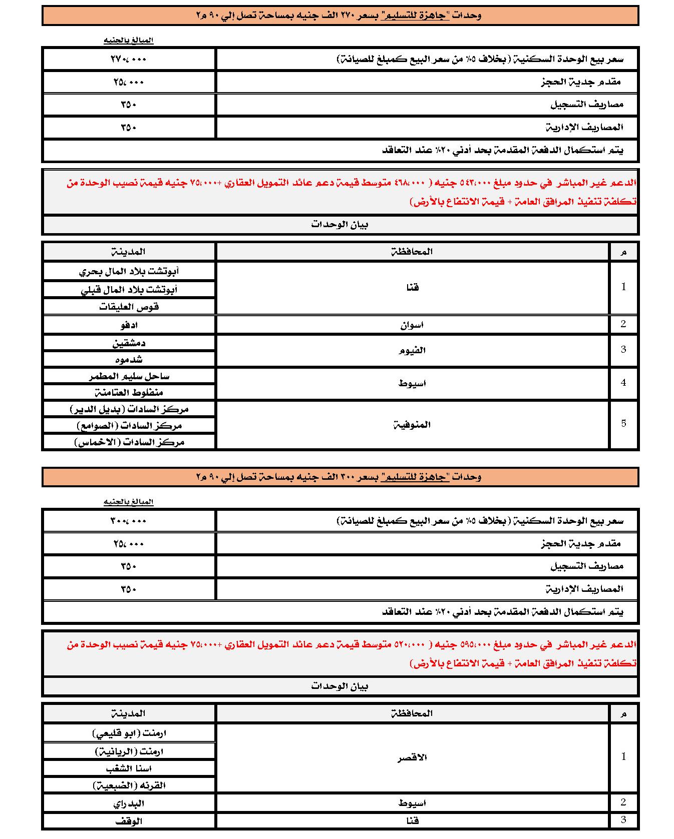 وحدات جاهزة التسليم لمنخفضي ومتوسطي الدخل في المحافظات لكافة المواطنين