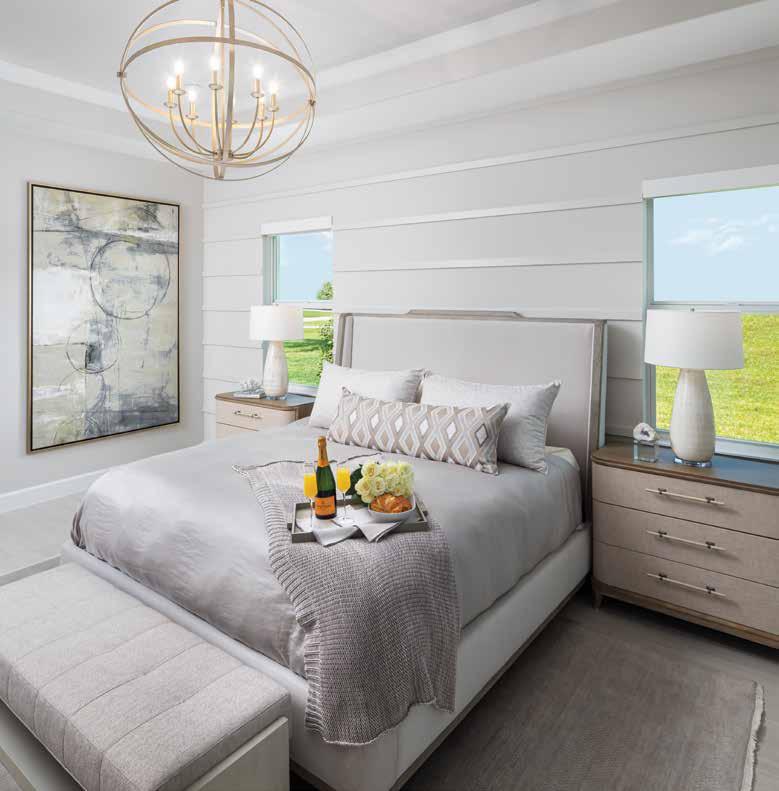 Design understand that sometimes a whisper commands more attention than a shout. They put that knowledge to good use in their design of this lovely four-bedroom, three-bath home in Estero’s WildBlue community. Eschewing bold colors, the pair brought the drama in other ways—through the use of carefully chosen textures and a muted palette—creating a sophisticated ambiance at once eye-catching and soothing.