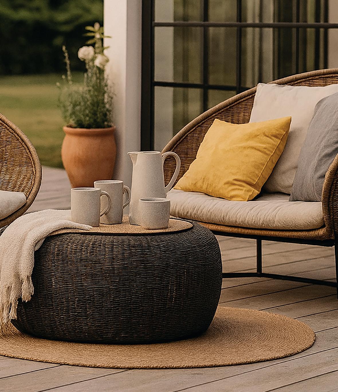 the cooler air. “Ornamental grasses are fantastic in autumn,” says Lucy. “They catch the light beautifully, add movement, and soften the harder edges of built-up surroundings.” Pairing textured throws with natural wood or stone surfaces also helps the space feel layered and lived-in.