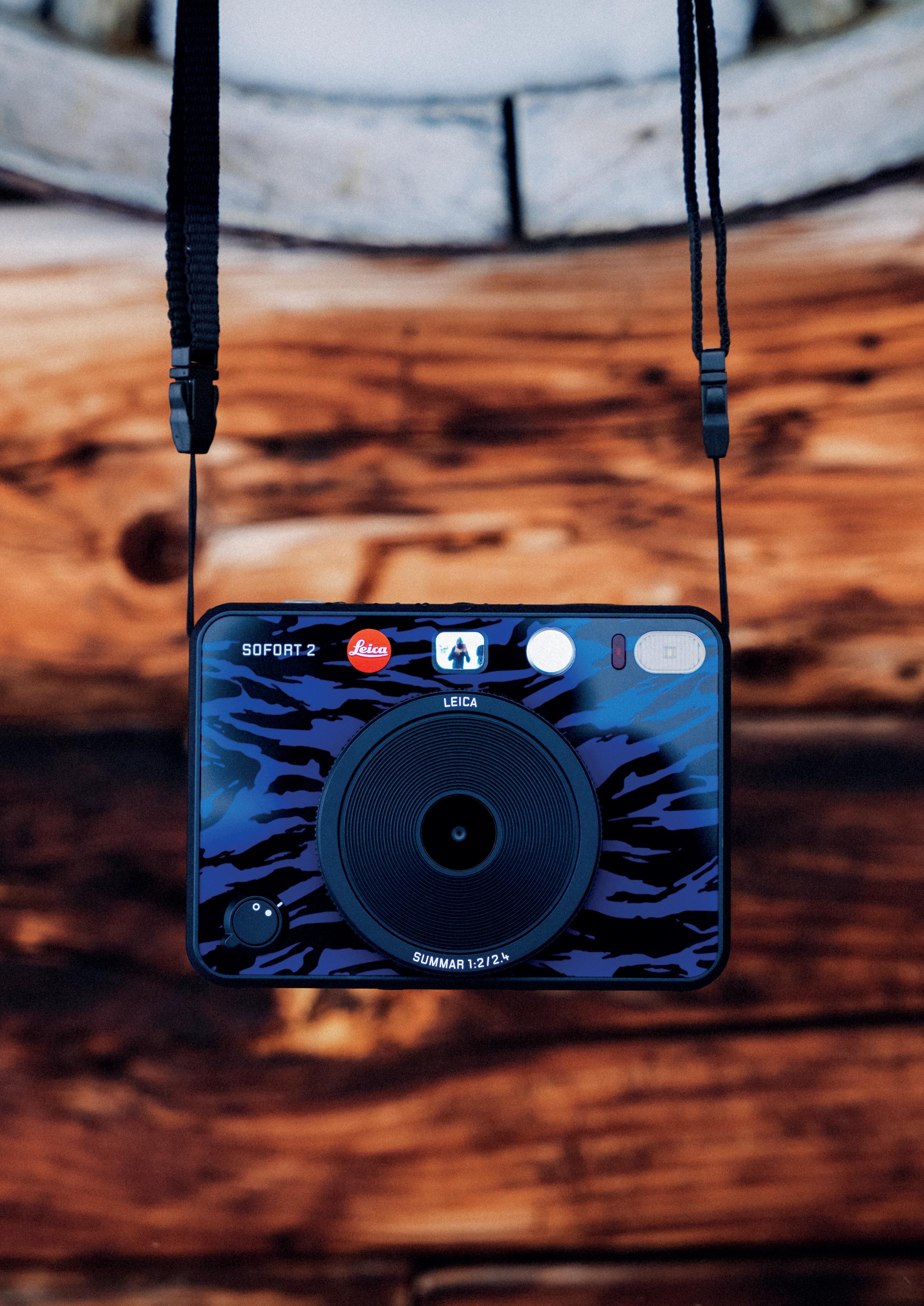 exclusive “Jake Blue” design. In addition to its striking pattern, it stands out from the standard model with the Burton logo on the camera’s top cover. The camera comes with a practical Burton camera bag. As a compact and modern instant camera, it seamlessly bridges the gap between digital photography and the tangible analogue world. The camera allows users to print selected photos directly. Thanks to its integration with the Leica Fotos App, users can even print images captured on their smartphone or another Leica camera.