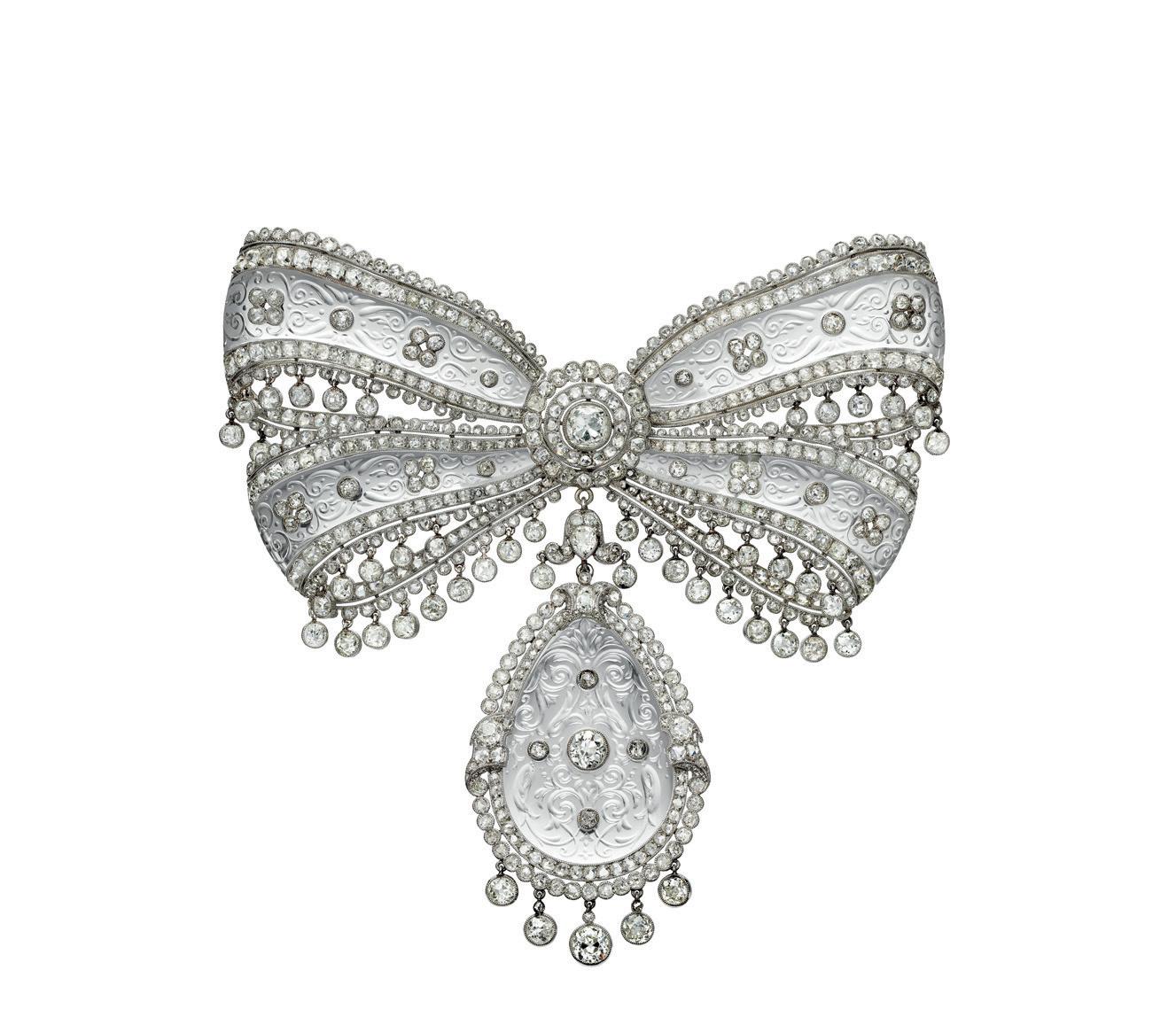 Stomacher Brooch, Cartier Paris, special order, 1913. Carved crystal, diamonds and platinum. Marian Gérard, Cartier Collection © Cartier vam.ac.uk/exhibitions/cartier