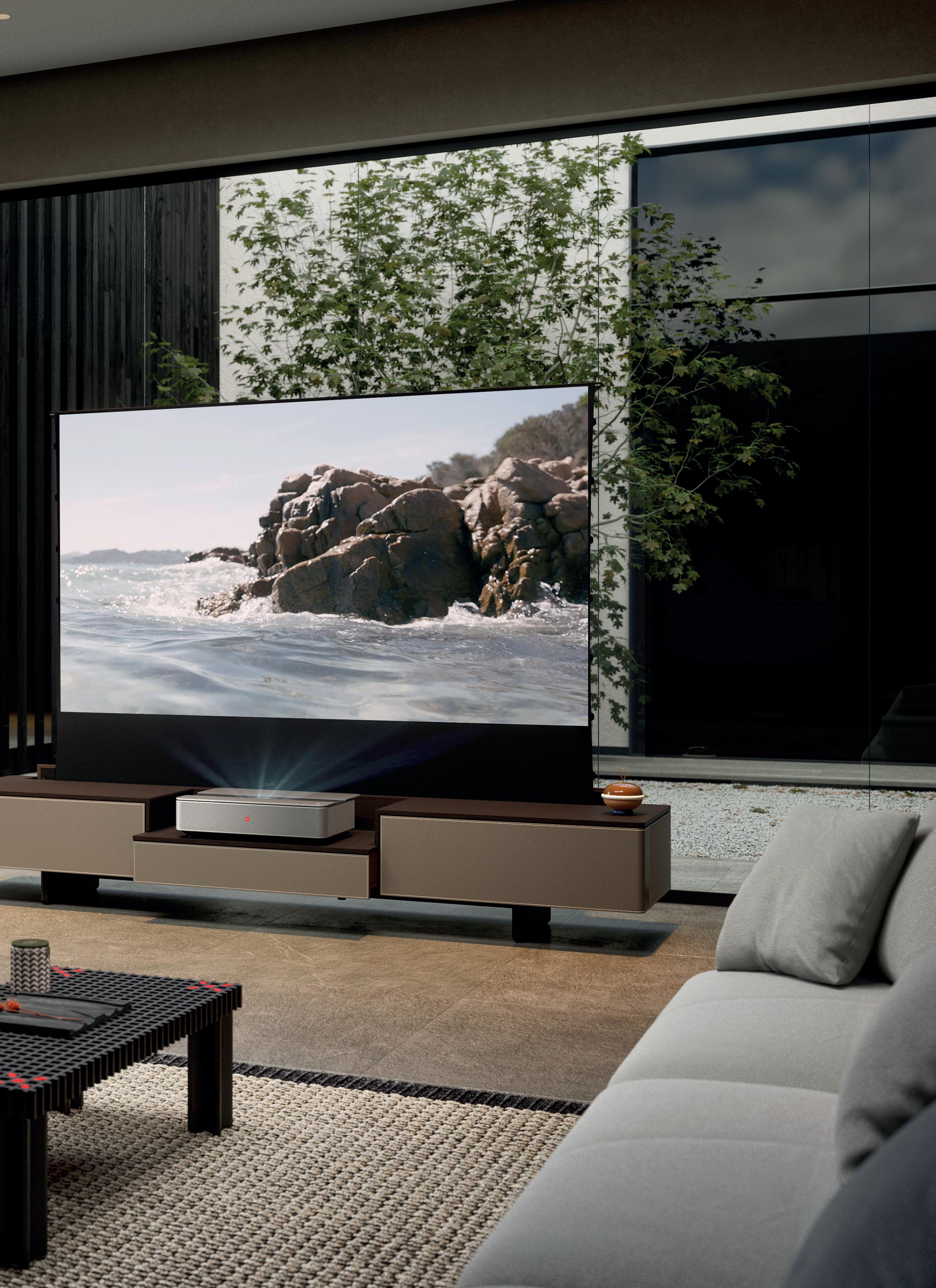 Every element tells a story of craftsmanship - Pelle Frau® Saddle leather stitched with precision, the warmth of natural wood, the lightness of form. And within, Leica’s Cine 1: a marvel of optical engineering. Triple-RGB laser brilliance, the legendary Summicron lens, and Leica’s own image optimization combine with Dolby Atmos ® sound to create an experience as intimate as it is spectacular.