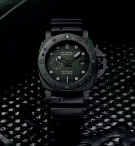 The Submersible Marina Militare PAM01697 and Submersible Marina Militare Carbotech™ PAM01698 represent the maximum expression of Panerai’s enduring collaboration with the Italian Navy, reflecting decades of precision engineering and innovation. Drawing inspiration from the elite Aviazione Navale, it showcases Panerai’s ability to create purpose- driven timepieces featuring cutting-edge materials and advanced functionality while paying homage to its legacy.