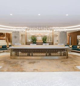 The sophisticated space compliments the elegant and refined setting of the prestigious area. With floor-to-ceiling windows showcasing the surrounding views and the interior design drawing inspiration from the sky above, incorporating sky blues, opulent ambers, and champagne tones.