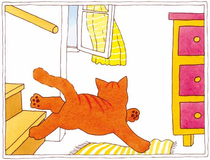 Hij rent – hup! – de trap op. De slaapkamer in. Over het bed heen. En onder het bed door. Tycho, waar is Dikkie Dik nou?