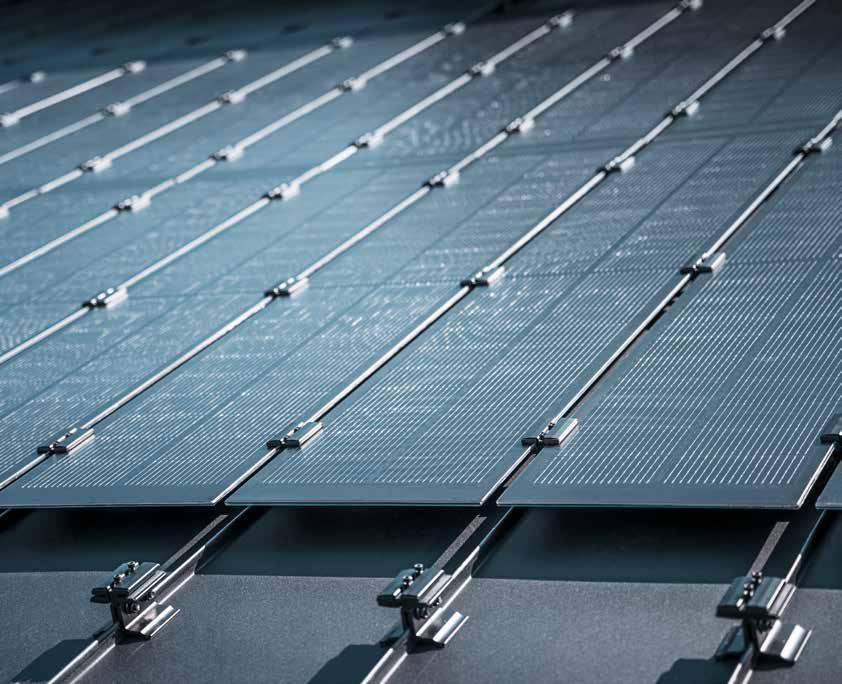 rispetto ai sistemi tradizionali, preservando l’aspetto caratteristico. Grazie alle staffe innovative appositamente progettate da Prefa, il nuovo sistema richiede un numero inferiore di componenti rispetto alle tradizionali soluzioni fotovoltaiche. Inoltre, l’assenza di binari, tipica delle sottostrutture convenzionali, consente un’installazione più rapida, riducendo i tempi di posa in opera del 20%.