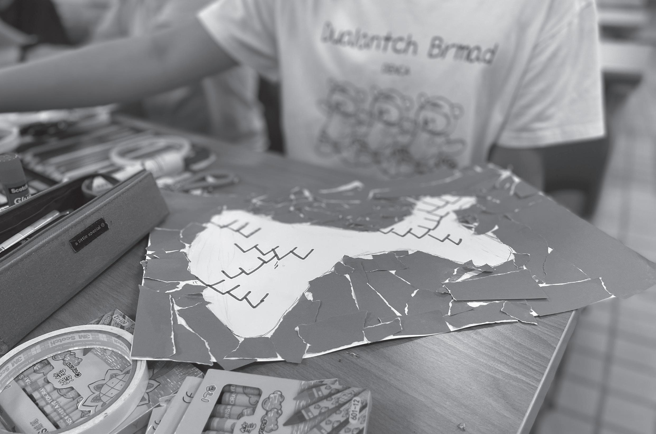 國內設計師 學生工作坊|看見金門的好 老師透過作品介紹讓學生們感受到對於生活事物的細微 觀察, 課程上也讓學員們想想自己對金門的印象,所感 受的是怎麼樣的金門?學員在實作中透過剪下或撕下五 顏六色的色紙、報紙、廣告單製作拼貼畫。 金門印象 生活觀察|拼貼體驗 金門縣金湖社會福利服務中心|第二會議室 工作坊特色| 生活觀察|畫面佈局|拼貼體驗 35