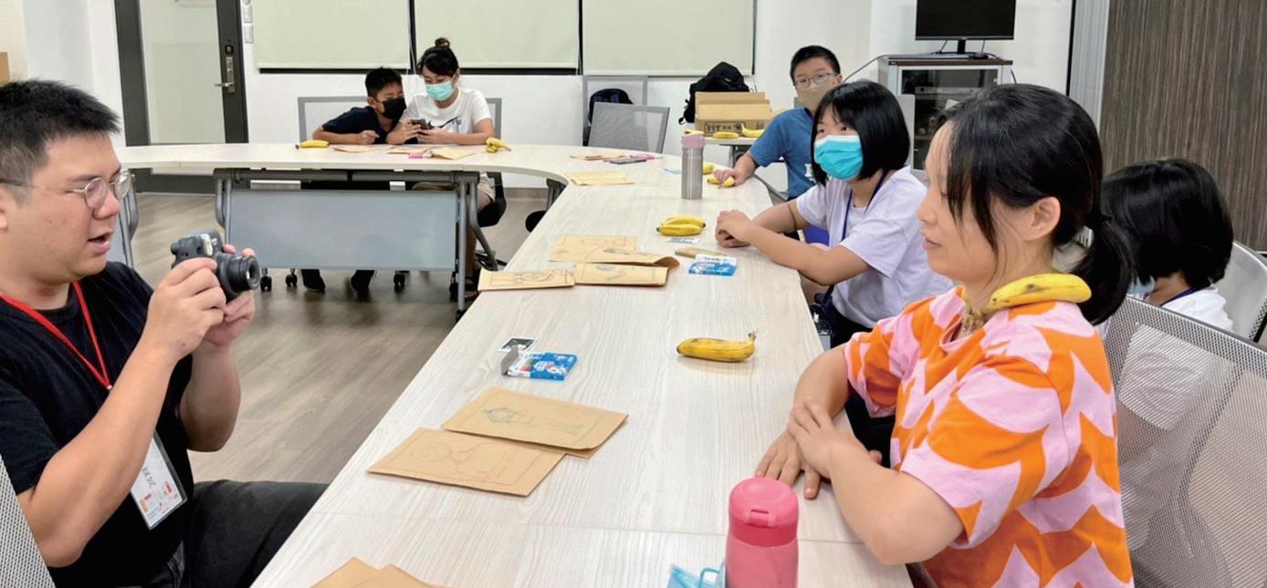 Taiwan 臺灣| Yi-peng Lee 李奕芃 教師研習工作坊 金門縣金湖鎮金湖國民小學|美術教室(一) 講師以攝影師橫浪修的水果肖像照為發想,引導老師們如何拍攝出一張可以表現 自我的三張照片,這三張照片中間又要如何構成一定的故事性。 在成果發表階段,講師使用拍立得相機,不同於數位相機,一人只有一次機會, 拍攝前的準備工作相當重要,引導學員一步一步的完成照片。最後讓老師們將成 果照片放在一起,共同討論與分享心得。 40