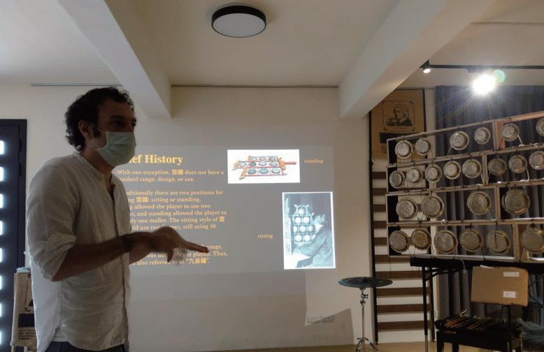 Virginia United States 美國 維吉尼亞 | Ross Aftel 若斯 在 found objects 課程,若斯老師帶了他慣用的樂器「花盆」,教導學員在日常生活中什麼都 能當作演奏樂器,也介紹了 graphic score 以圖像的方式紀錄並傳遞自己創作的音樂。 最後則是讓大家整合兩天的課程中學習到的知識,進行一場屬於工作坊學員的金門音樂會。 聆聽金門的好 國際設計思考工作坊 金門音樂會 日常物件|圖像紀錄|創作表演 22