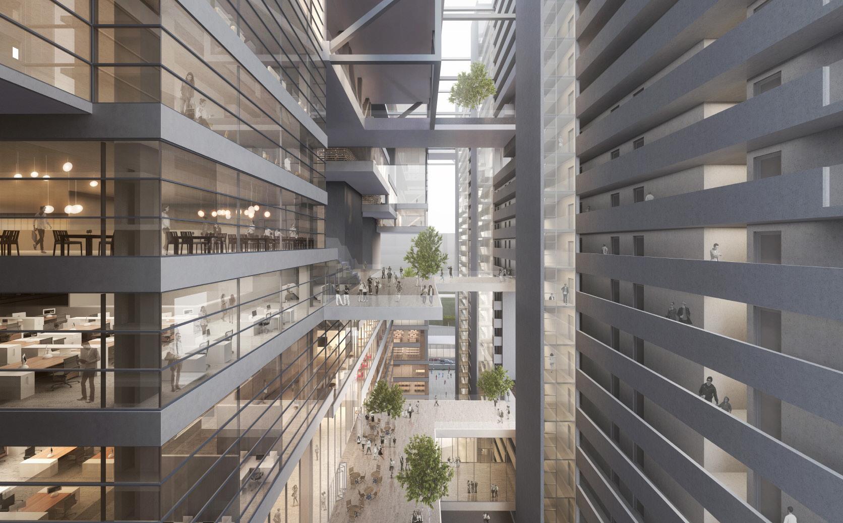 The heart of the design is the atrium in the center of the dormitory for the natural lighting and the efficiency of the organization of the units. Also, there are variety of the units for the graduate students with different environments.